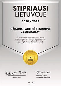 Sertifikatas „Stipriausi Lietuvoje 2020-2025“